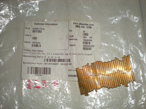 (PK OF 30) INTERCONNECT DEVICES S-4-D-7-G S4D7G SIZE 4 SPRING CONTACT PROBE NEW