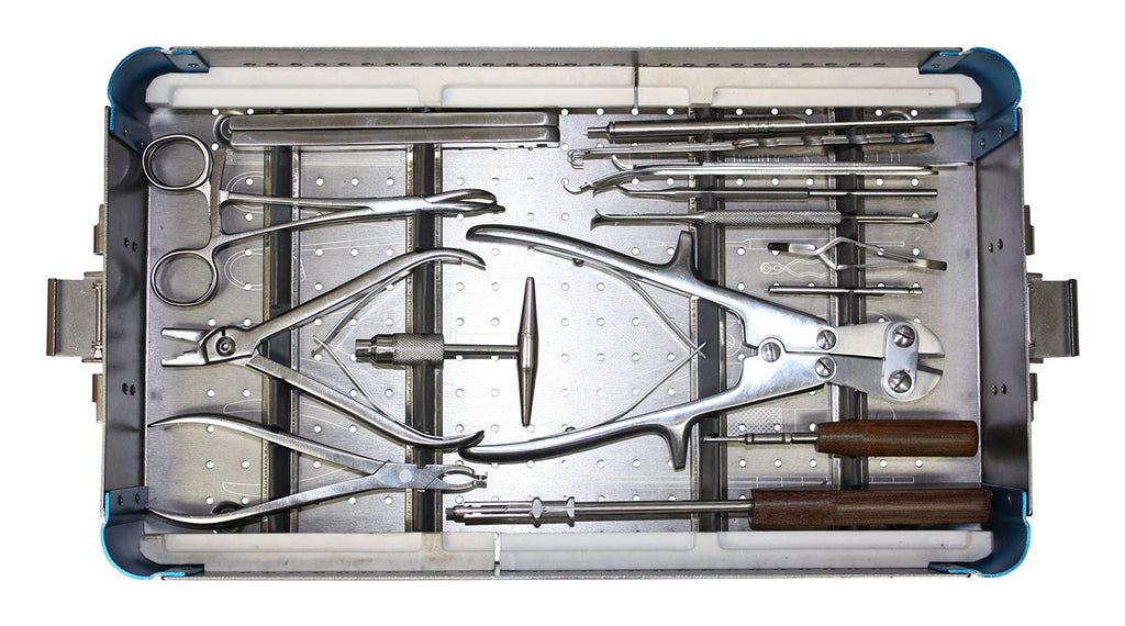 This is a complete micro system with high quality stainless steel plates, self-tapping screws, and instruments. Includes: Bone drill bit 1.1x80mm (5); Bone drill bit 1.5x80mm (5); Bone drill bit 2.0x80mm (5); Bone Tap 1.5mm (1); Bone Tap 2.0mm (1); Bone Tap 2.7mm (1); Screwdriver 1.5/2.0mm (1); Screw holding sleeve 1.5mm (1); Screwdriver 2.7mm (1); Screw holding sleeve 2.7mm (1); Drill Guide 1.1/1.5mm (1); Drill Guide 1.5/2.0mm (1); Drill Guide 2.0/2.7mm (1); Counter drill 4.0mm (1); Straight quick-coupling handle 4.5mm (1); T-shape quick-coupling handle 4.5mm (1); Screwdriver with handle 2.6mm (1); Depth detector 40mm (1); Hook (2); De-coupling (1); Periosteal dissector 3mm (1); Periosteal dissector 5mm (1); Screw holder (1); Plate Forcep (1); Plate Bender 2x1 (set); Elevator 3x1 (1);Bent Reduction Forcep (1); Sharp Reduction Forcep (1); Plate Nipper (1); Multi-functional Forcep (1); Bone plate box 1.5mm (1); Bone plate box 2.0mm (1); Bone plate box 2.7mm (1); Case with lid 15"9"x3" (1); Bone screws 1.5mm self tapping (40) Sizes (6-30mm); Bone screws 2.0mm self tapping (55) Sizes (6-30mm); Bone screws 2.7mm self tapping (60) Sizes (8-30mm); Bone plate 1.5mm (7); Bone plate 2.0mm (10); Bone plate 2.7mm (10). In USA, can only be used for Veterinary field.
