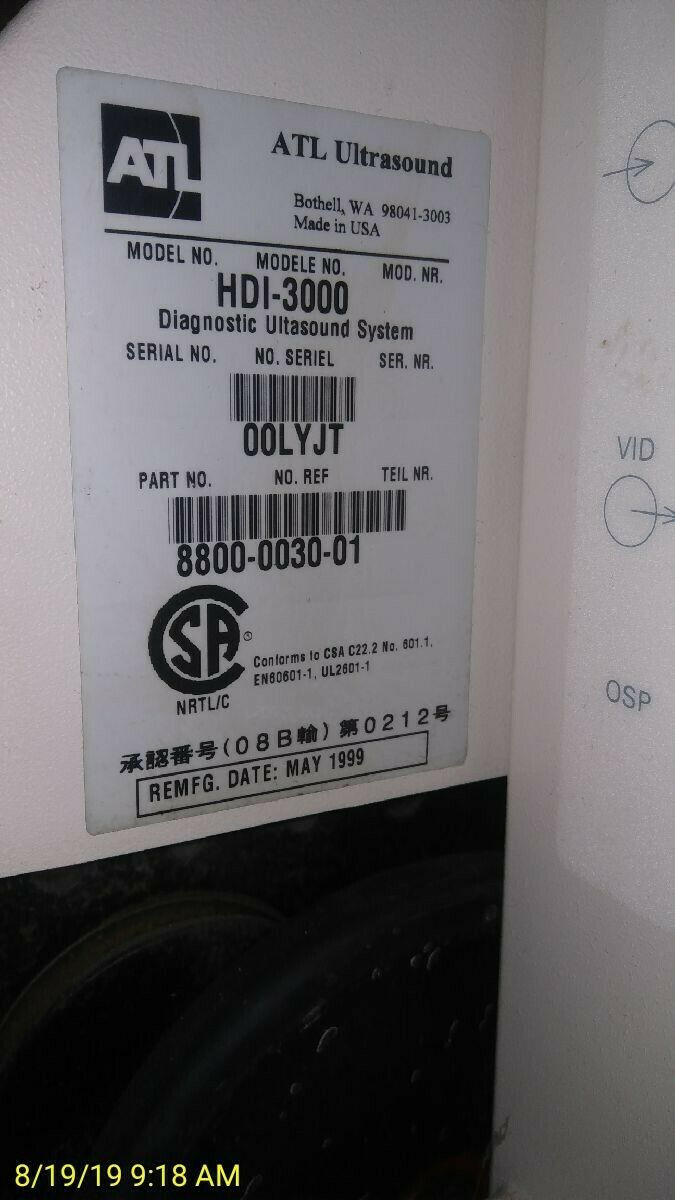 Philips ATL HDI  3000 Ultrasound Machine.  System passed diagnostics. Tested